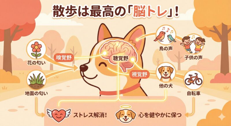 散歩には、犬の内面を満たし、精神的なバランスを整える「心の栄養」としての極めて重要な側面があります。家の中だけでは得られない刺激や経験が、愛犬の幸福度を大きく左右すると言っても過言ではありません。ここでは、散歩が担う3つの精神的な役割について、具体的に解説していきます。